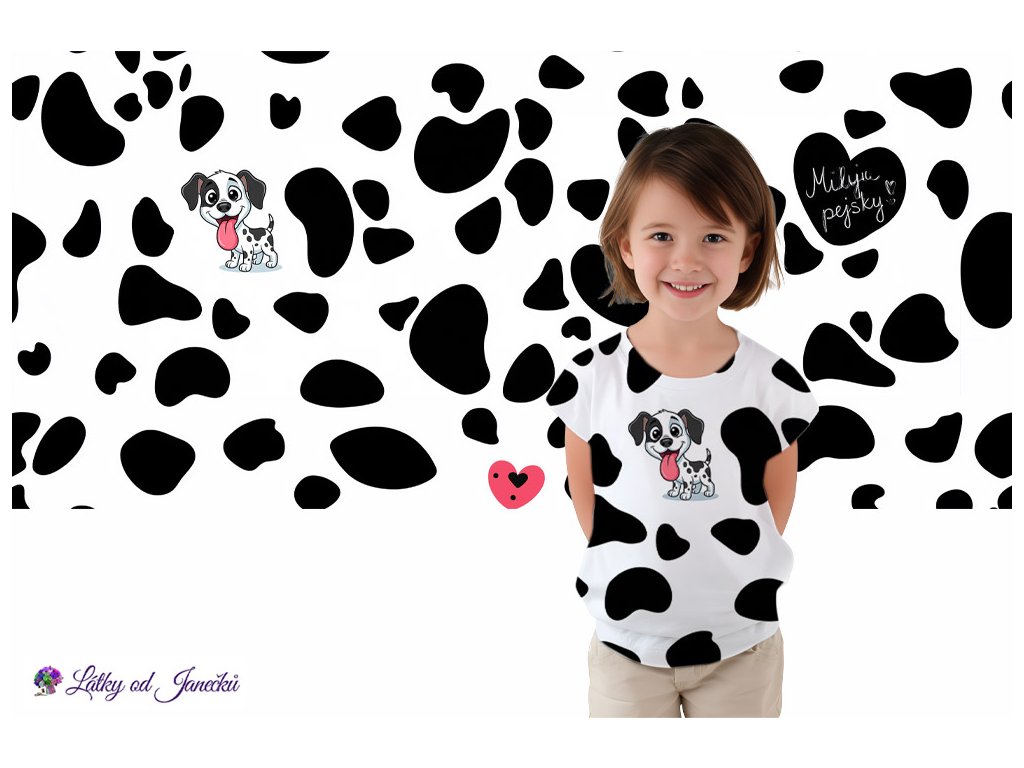 SKLADEM DUBEN - Bavlněný úplet TOP 180g - PANEL 66 cm - Miluji pejsky