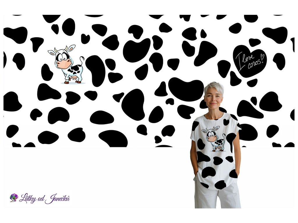 SKLADEM DUBEN - Bavlněný úplet TOP 180g - PANEL 80 cm - Miluji kravičky
