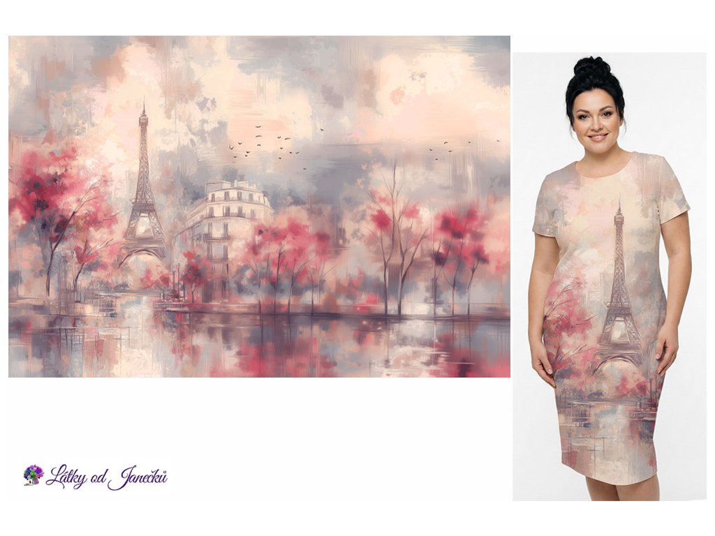 SKLADEM DUBEN - Kimo úplet - PANEL 120x158 cm - Růžová Paříž