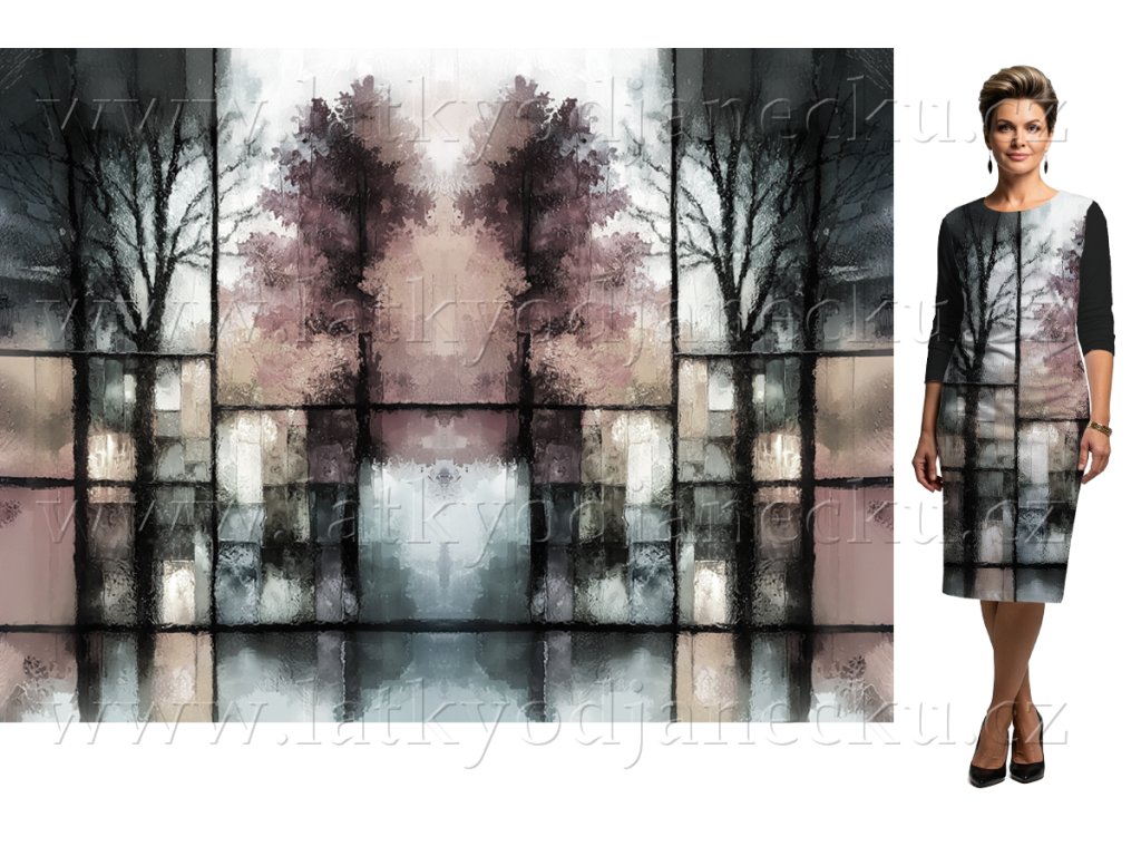 SKLADEM 10/4 - Šatovka 260 g - PANEL na šaty 120x150 cm - Stromy za oknem