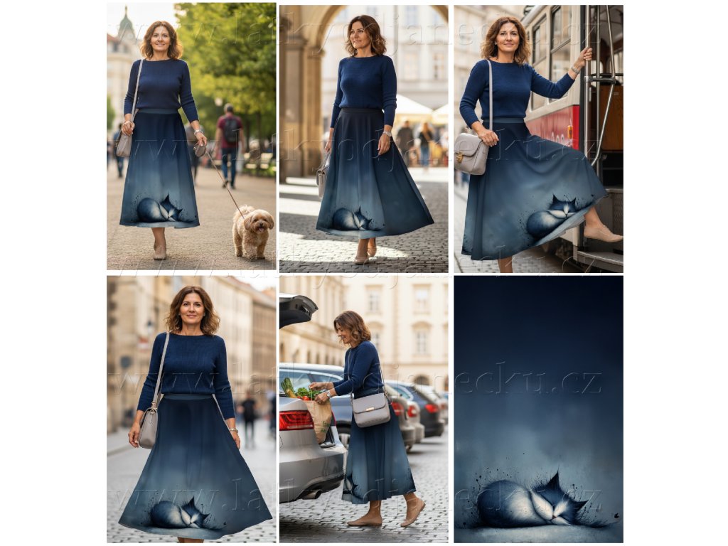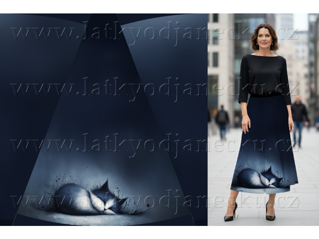 SKLADEM 10/3 - Šatovka 260 g - PANEL NA SUKNI 150x150 cm - Modrá kočička