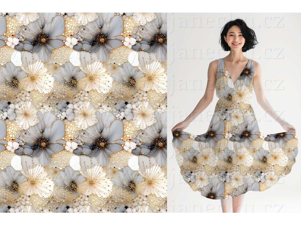Silky tkanina 90 g * Zlaté květy * KUS 1,4m