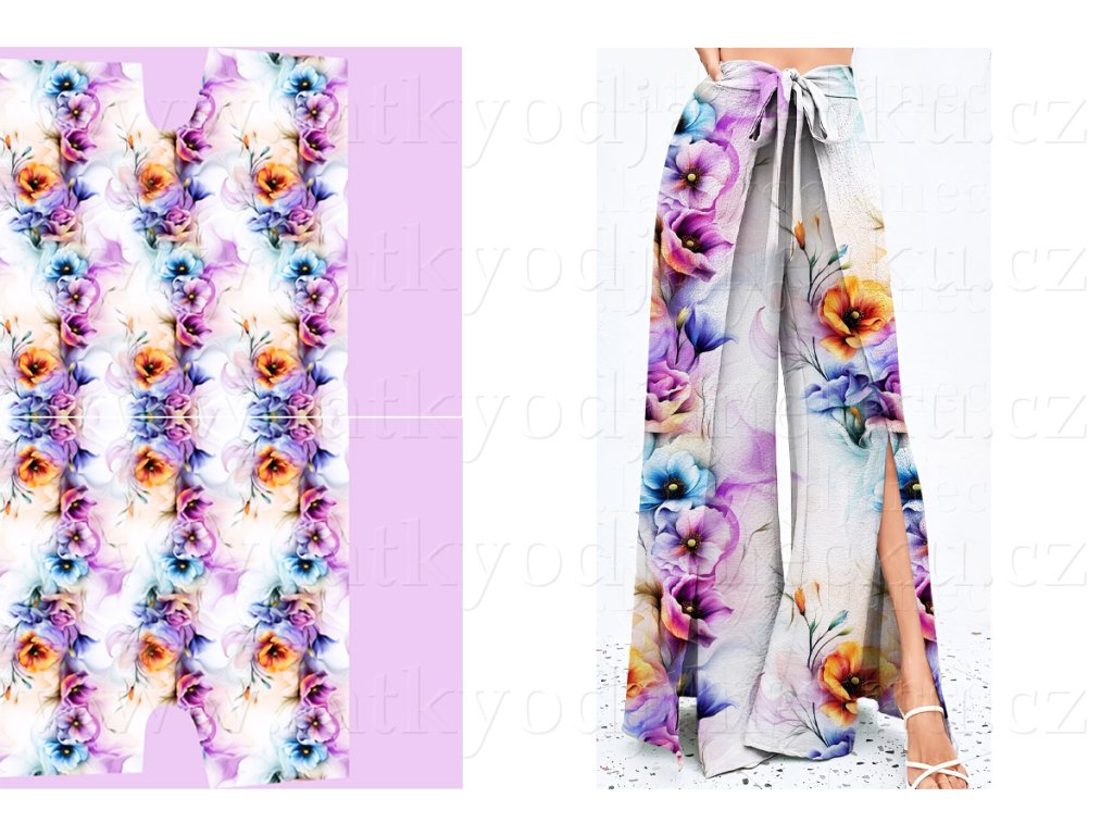 Silky tkanina 90g * PANEL na zavinovací kalhoty SE STŘIHEM 200x137cm * Květinový akvarel