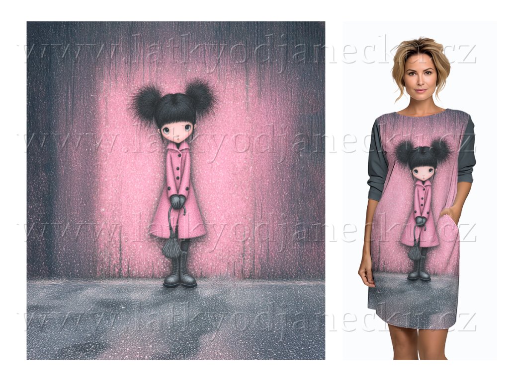 SKLADEM 11/2 - Teplákovina 240g - PANEL na přední díl mikinošatů XL 100 cm - Dívka v růžovém
