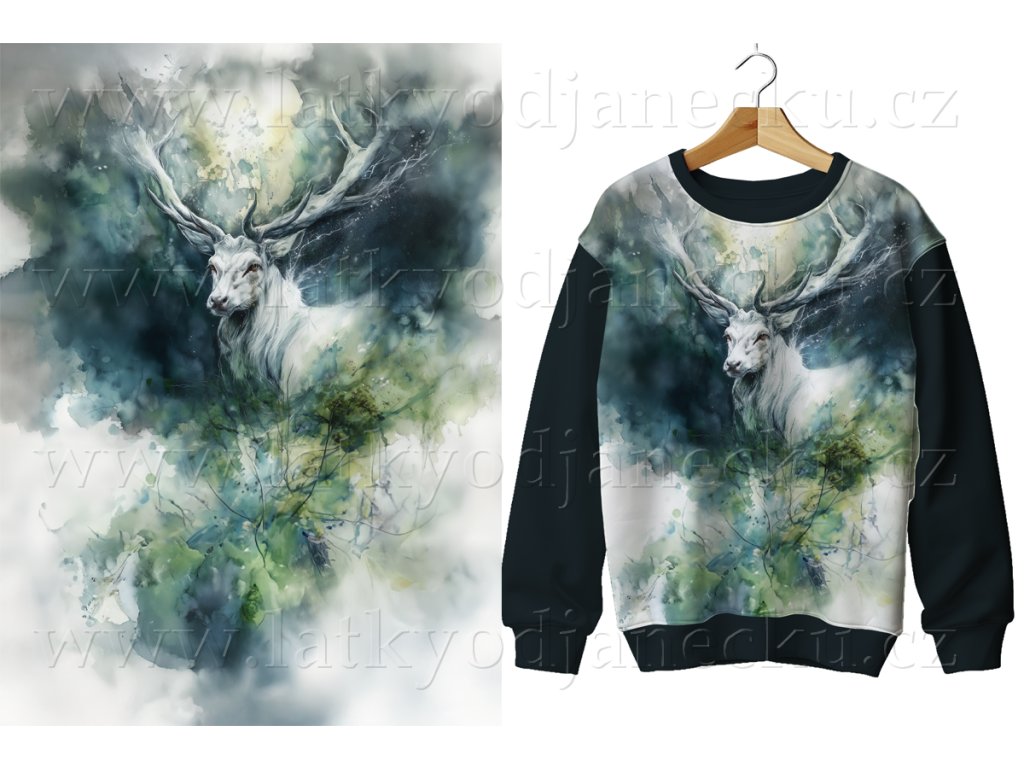 SKLADEM 11/3 - Teplákovina 240g - PANEL na přední díl mikiny pro náctileté L - Malovaný jelen