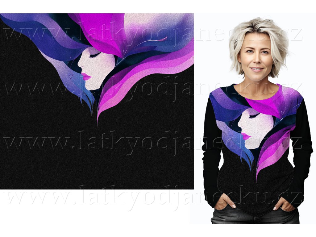 Panel je určen na přední díl. Na zadní díl a rukávy je potřeba dokoupit bavlněný úplet - stačí vždy délka panelu. Např, k tomuto panelu bavlněný úplet - 80 cm.