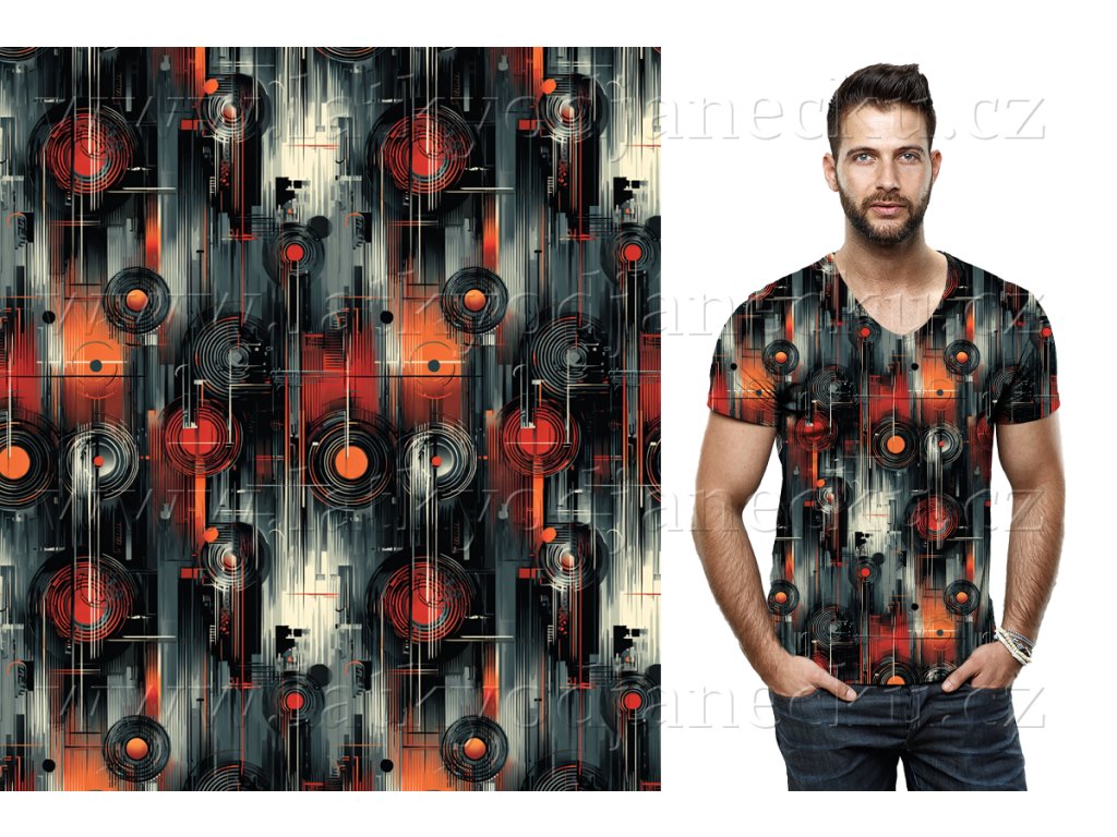 SKLADEM 11/1 - Bavlněný úplet 200g - Abstraktní gramodesky