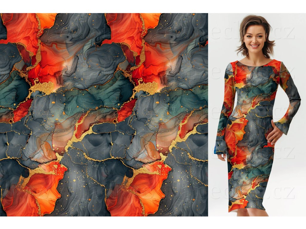 Teplákovina 240 g - Oranžovo-šedý abstrakt - KUS 0,6m