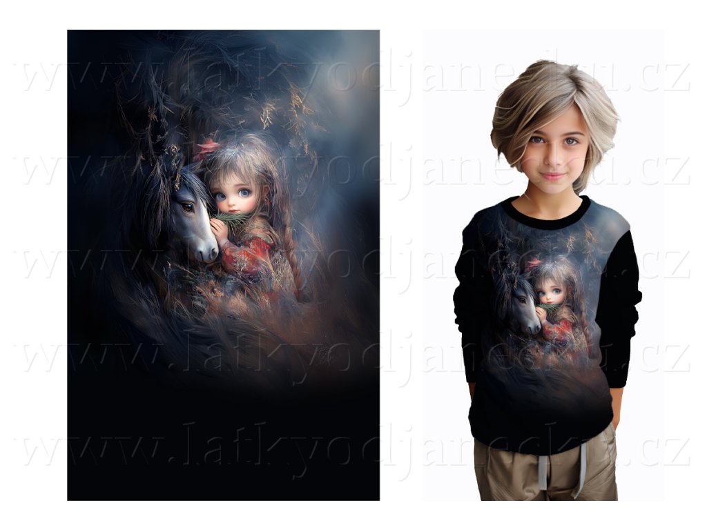 Teplákovina 240g * PANEL M * Dívka s koněm na tmavém