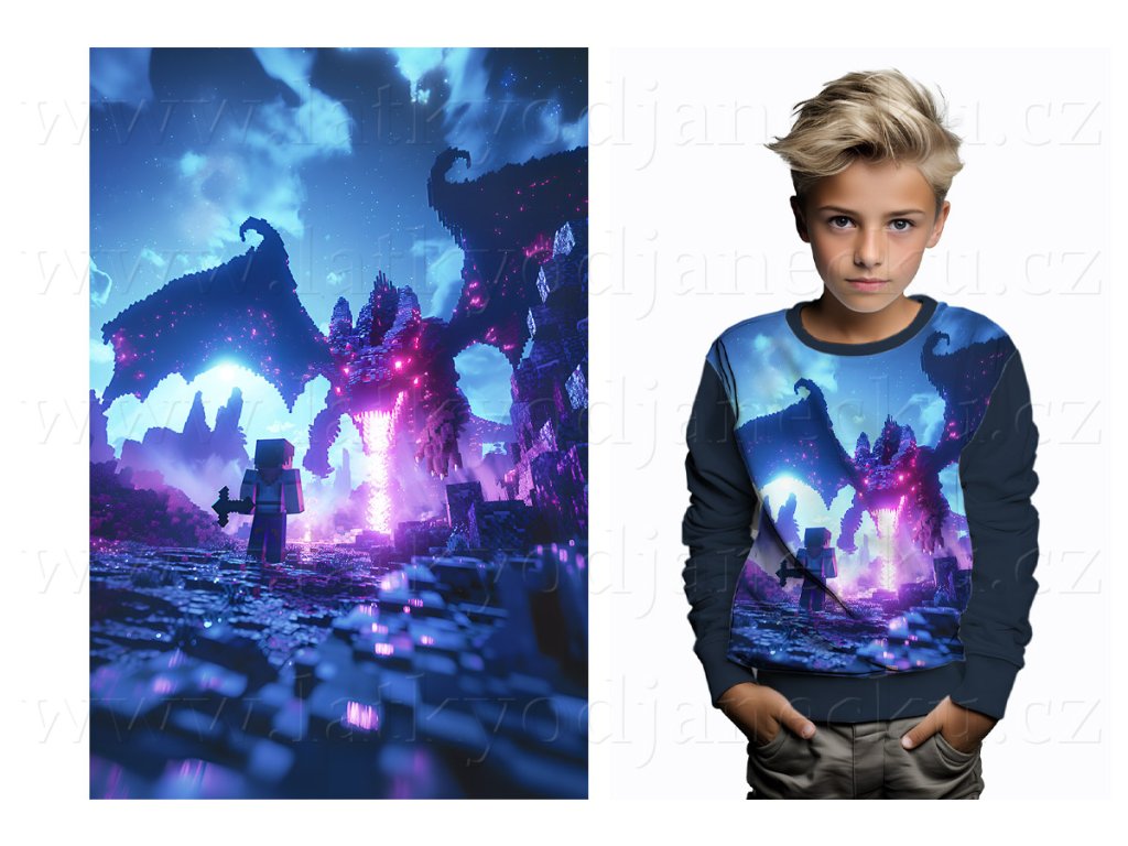 Panel je určen na přední díl. Na panel se vejde střih cca do velikosti 140 - na štíhlejší děti. (Pro jistotu si vždy změřte šířku předního dílu vašeho střihu - panel má na šířku 44 cm, ale počítejte radši 42 cm) Na zadní díl a rukávy je potřeba dokoupit látku - stačí vždy délka panelu. Např, k tomuto panelu - 70 cm.