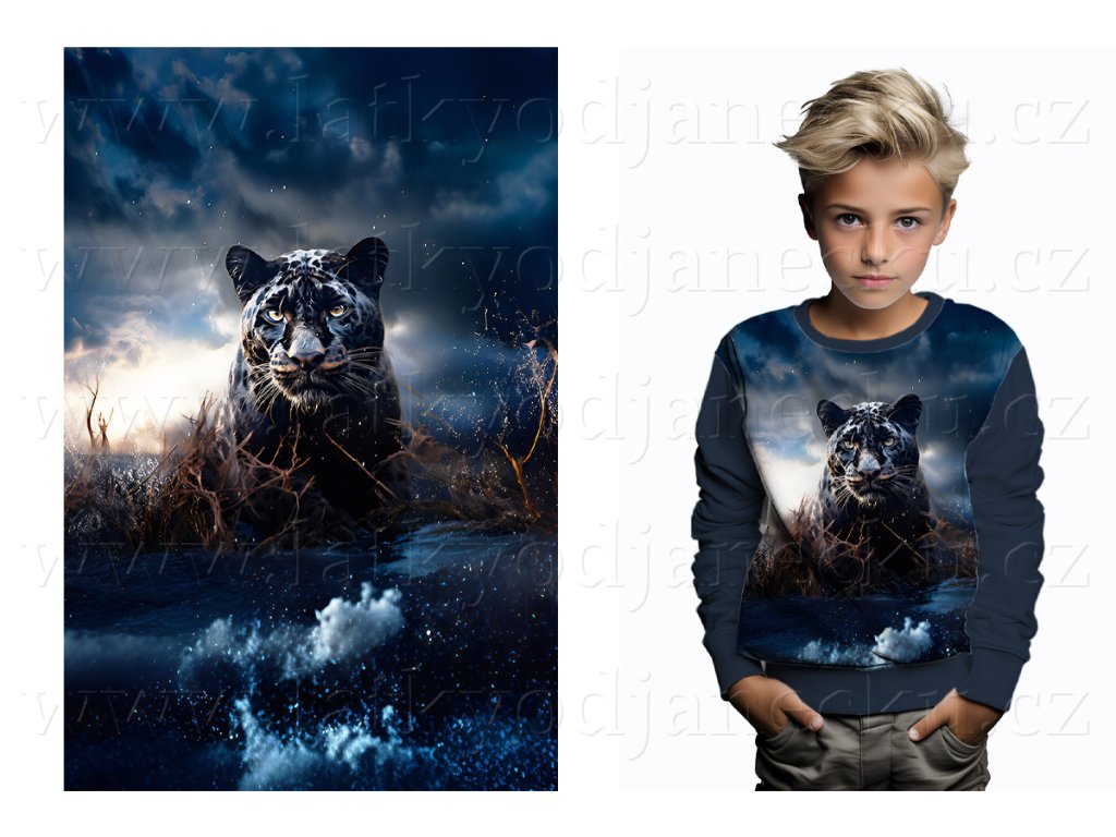 Panel je určen na přední díl. Na panel se vejde střih cca do velikosti 140 - na štíhlejší děti. (Pro jistotu si vždy změřte šířku předního dílu vašeho střihu - panel má na šířku 44 cm, ale počítejte radši 42 cm) Na zadní díl a rukávy je potřeba dokoupit látku - stačí vždy délka panelu. Např, k tomuto panelu - 70 cm.