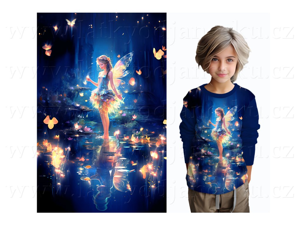 Panel je určen na přední díl. Na panel se vejde střih cca do velikosti 140 - na štíhlejší děti. (Pro jistotu si vždy změřte šířku předního dílu vašeho střihu - panel má na šířku 42,5 cm. Na zadní díl a rukávy je potřeba dokoupit látku - stačí vždy délka panelu. Např, k tomuto panelu - 70 cm.
