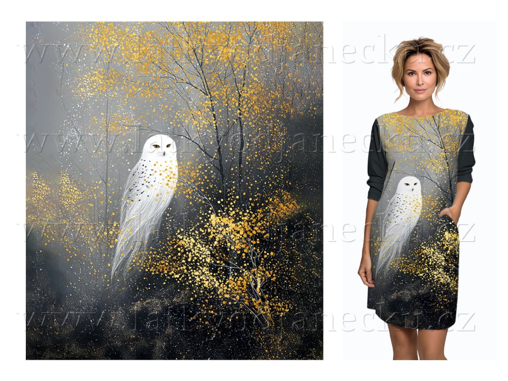 Teplákovina 240g - PANEL na přední díl - 80 cm - Bílá sova