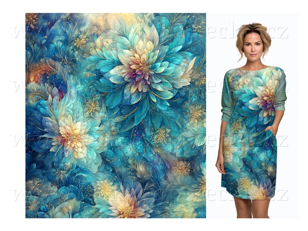 Panel je určen na přední díl. Na zadní díl a rukávy je potřeba dokoupit látku - stačí vždy délka panelu. Např, k tomuto panelu - 100 cm.