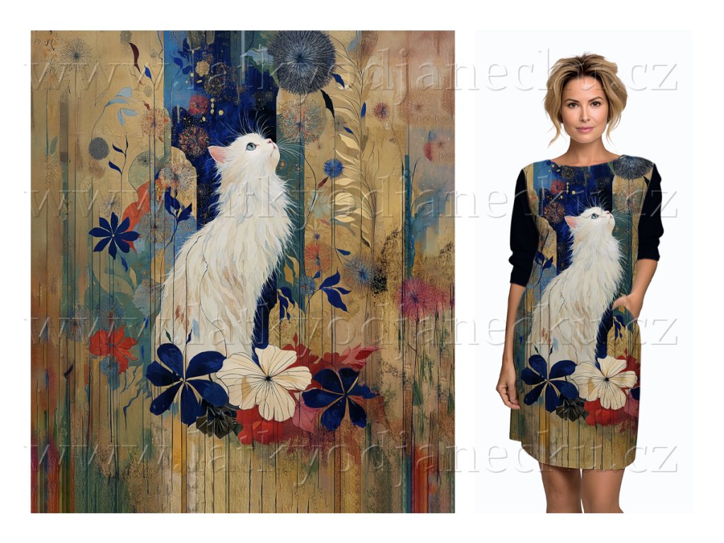 SKLADEM 11/1 - Teplákovina 240g - PANEL na přední díl mikinošatů 100 cm - Bílá kočka