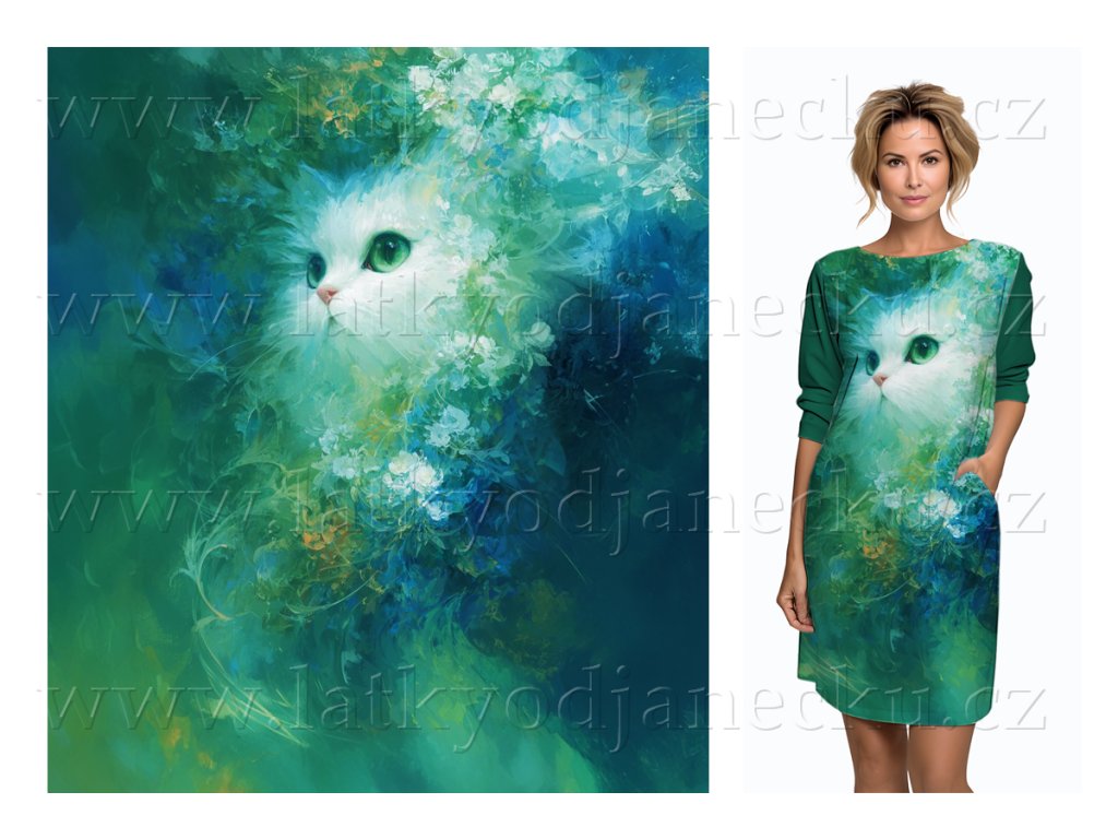 SKLADEM 11/1 - Teplákovina 240g - PANEL na přední díl mikinošatů 100 cm - Kočka v zelené