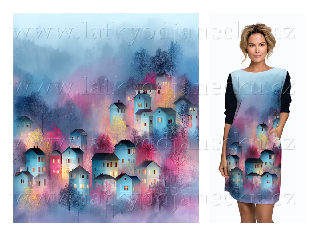 SKLADEM 11/1 - Teplákovina 240g - PANEL na přední díl mikinošatů 100 cm - Růžová vesnička