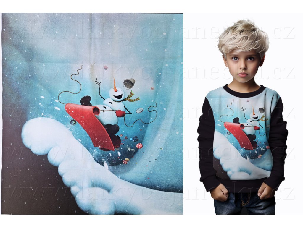 Teplákovina 240g - PANEL na přední díl mikiny pro náctileté L 70cm - Veselý sněhulák