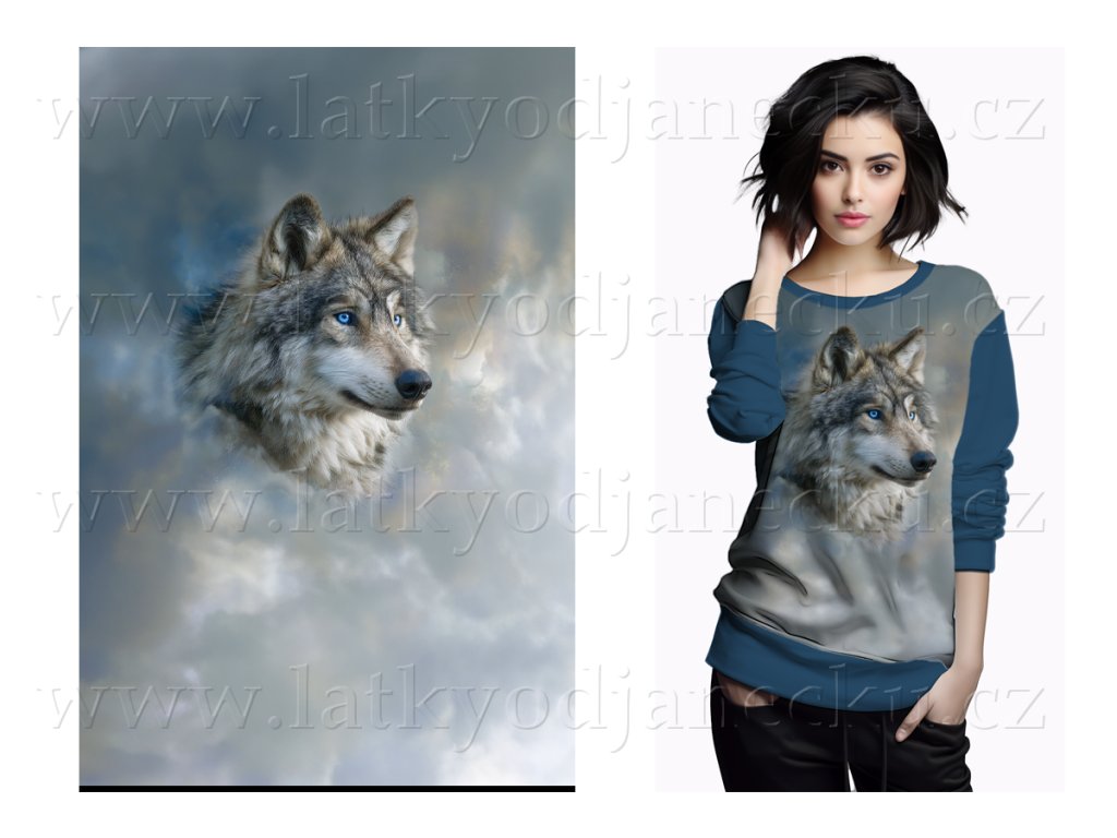 SKLADEM 11/3 - Teplákovina 240g - PANEL na přední díl mikiny pro náctileté L - Hlava vlka