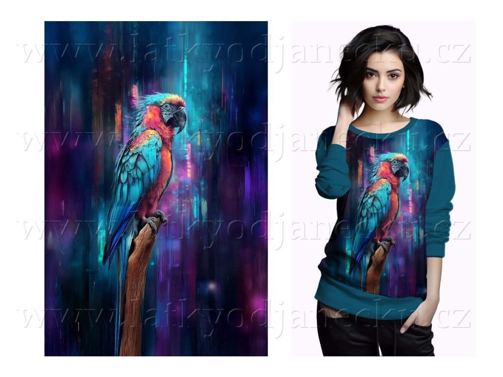 Panel je určen na přední díl. Na zadní díl a rukávy je potřeba dokoupit látku - stačí vždy délka panelu. Např, k tomuto panelu - 80 cm.