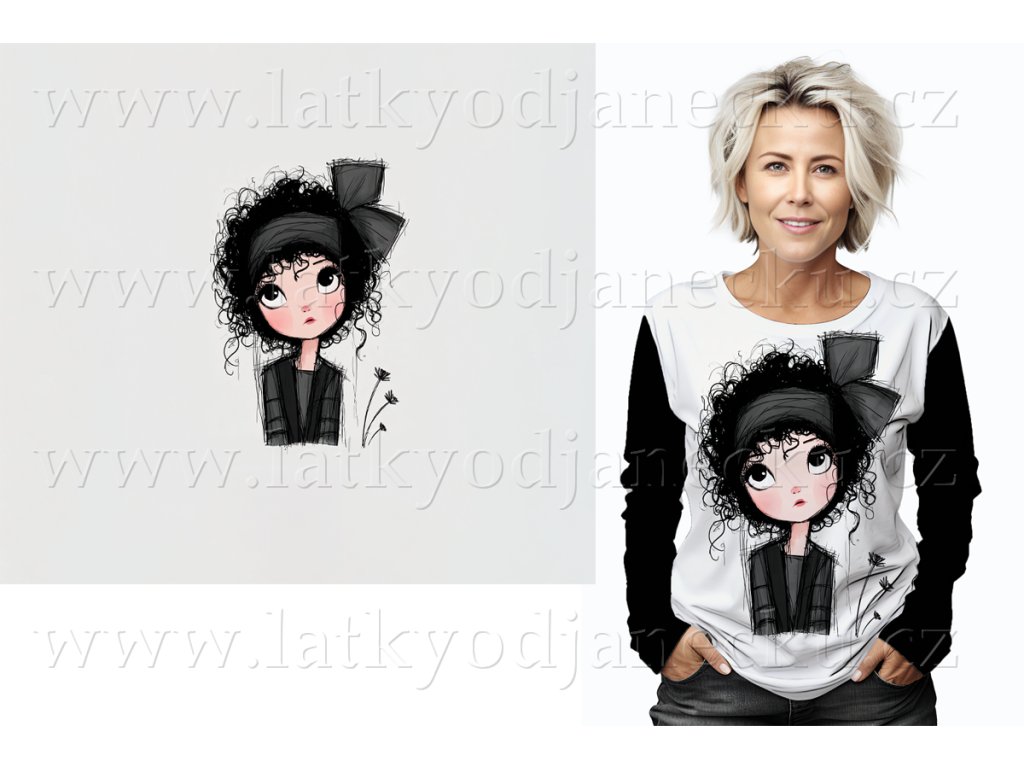 SKLADEM 11/2 - Teplákovina 240g - PANEL na přední díl mikiny XL 80 cm - Dívka s mašlí