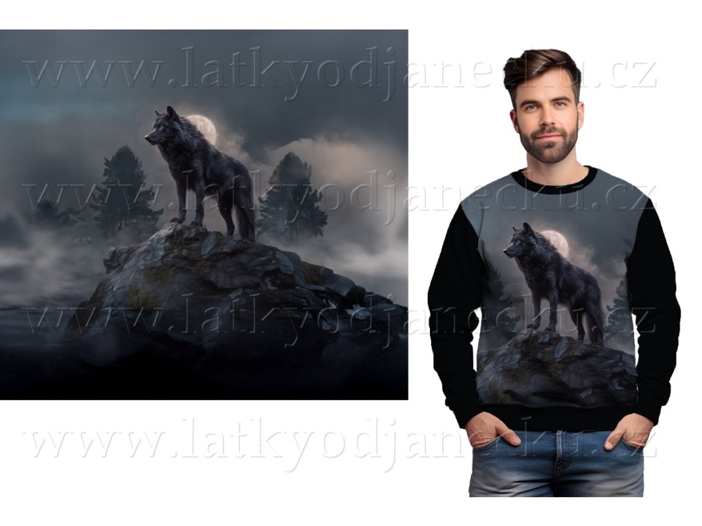 SKLADEM 11/3 - Teplákovina 240g - PANEL na přední díl mikiny XL 80 cm - Vlk na skále