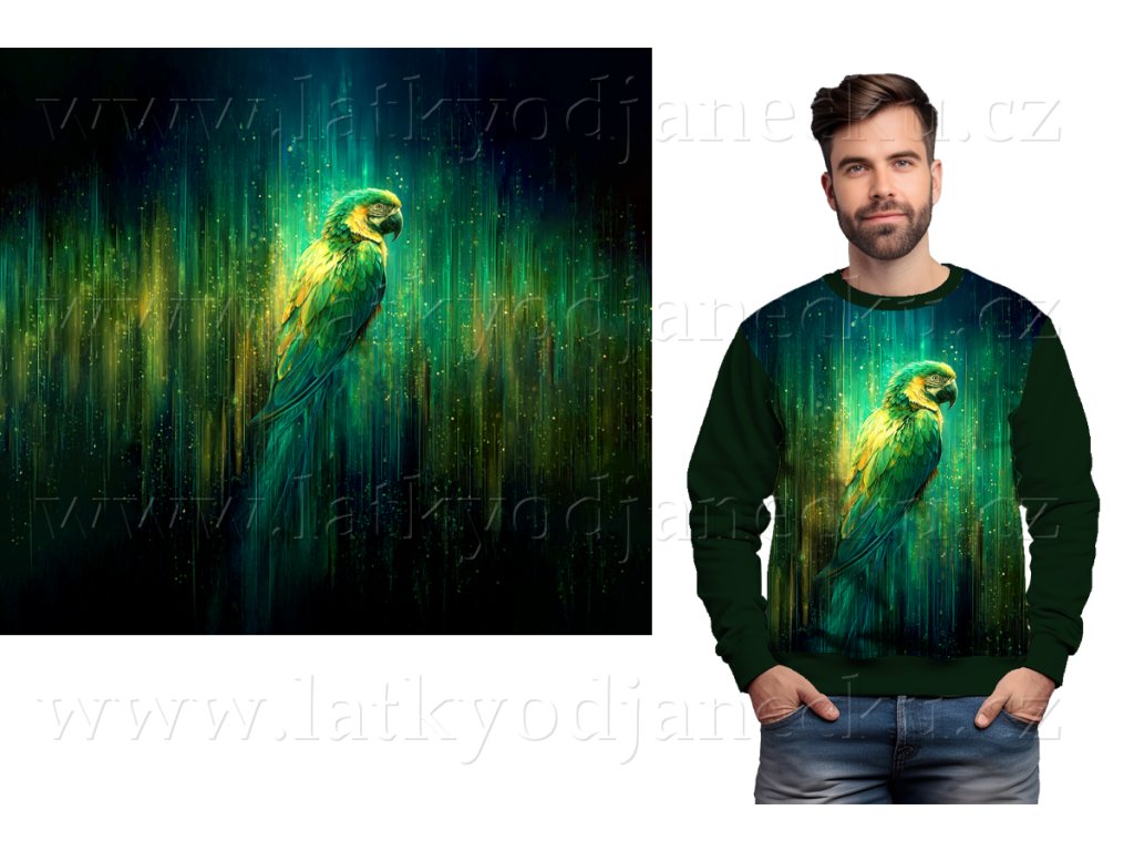 SKLADEM 11/3 - Teplákovina 240g - PANEL na přední díl mikiny XL 80 cm - Zelený papoušek