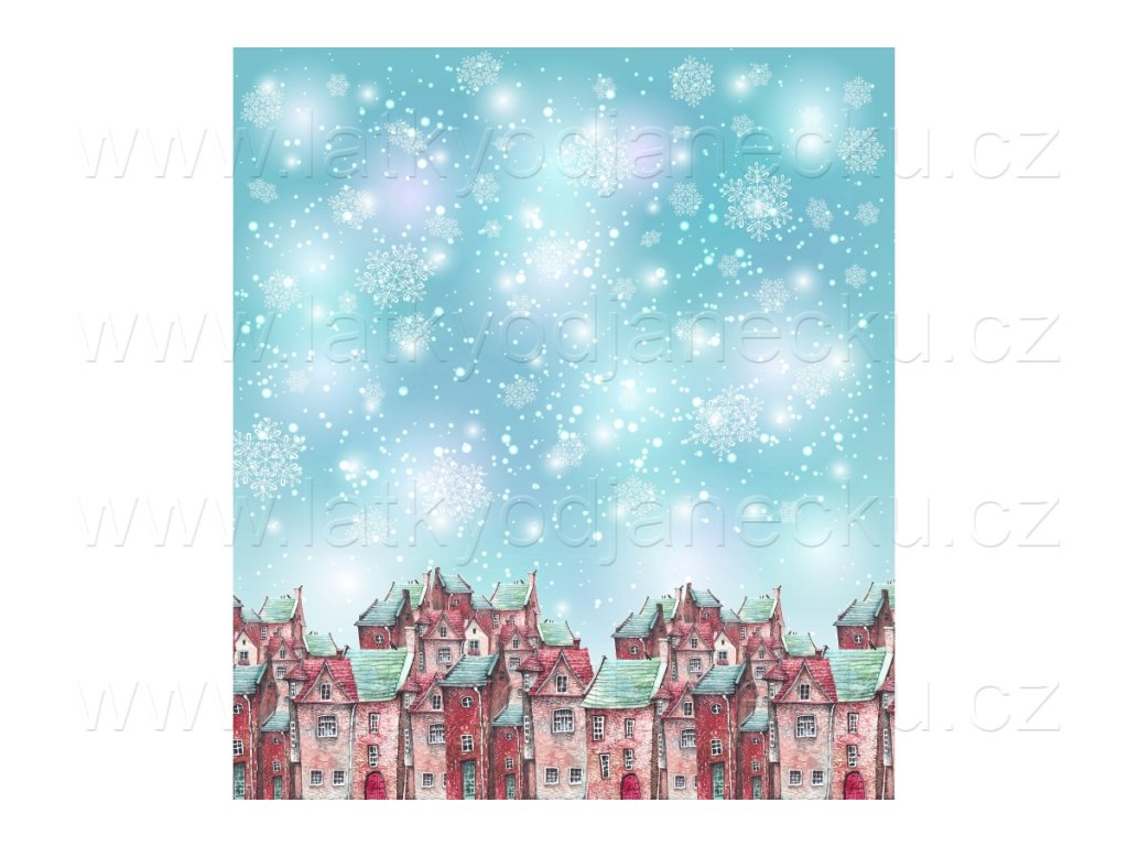 Teplákovina 240g - PANEL na přední díl - XL 100 cm - Domky mint