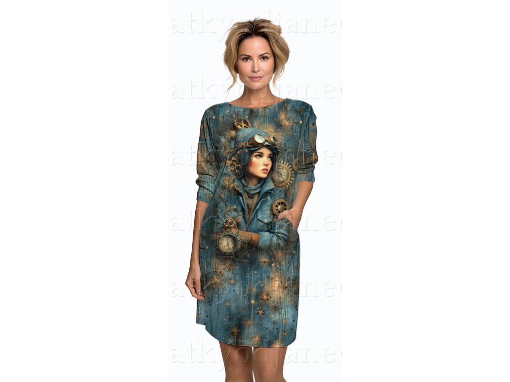 SKLADEM 12/2 - Teplákovina 240g - PANEL na přední díl XL 100 cm - Steampunk Pilotka