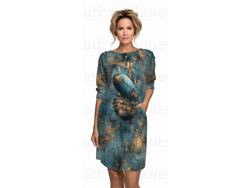 SKLADEM 12/2 - Teplákovina 240g - PANEL na přední díl XL 100 cm - Steampunk Vzducholoď