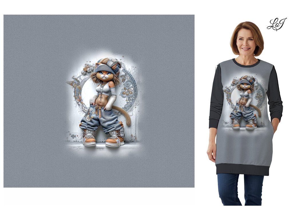 Teplákovina 240g - PANEL na přední díl XL 80 cm - Crazy kočka