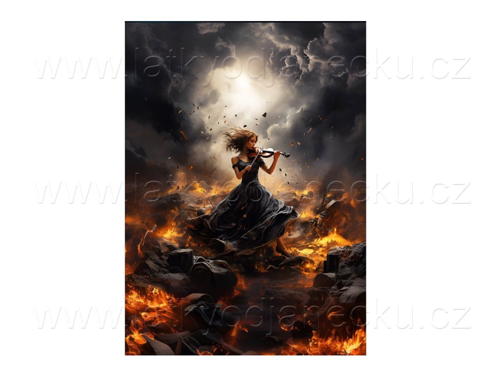 Teplákovina 240g - PANEL na přední díl - XL 80 cm - Dívka s houslemi