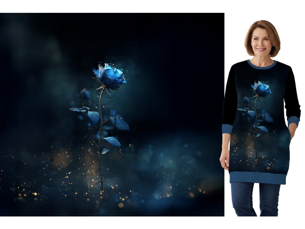 SKLADEM 12/2 - Teplákovina 240g - PANEL na přední díl XL 80 cm - Modrá růže