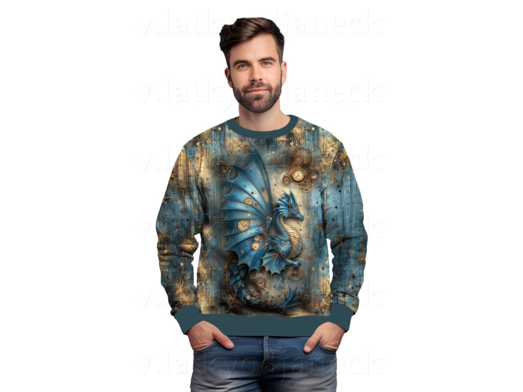 SKLADEM 12/2 - Teplákovina 240g - PANEL na přední díl XL 80 cm - Steampunk Drak