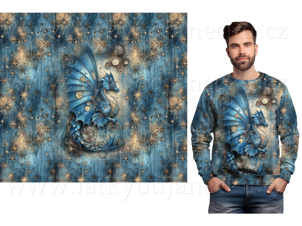 Teplákovina 240g - PANEL na přední díl XL 80 cm - Steampunk Drak