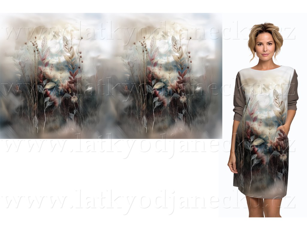 Teplákovina 240g - PANEL na šaty 100 cm - Mlžná louka