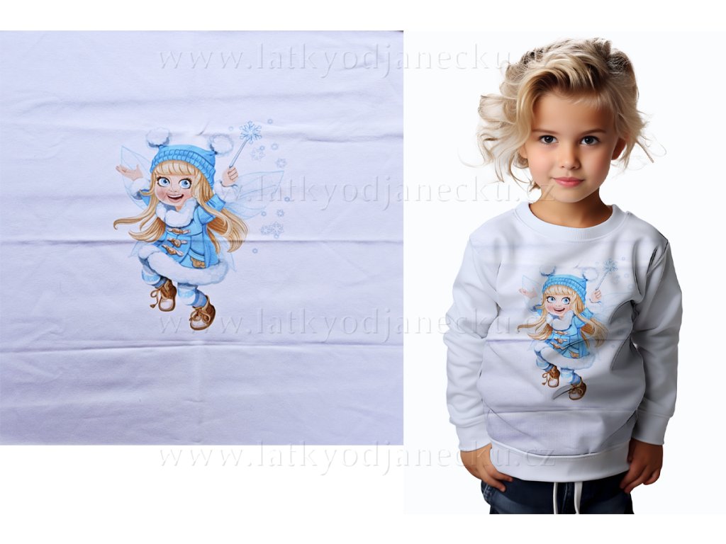 Panel je určen na přední díl. Na panel se vejde střih cca do velikosti 116. (Pro jistotu si vždy změřte šířku předního dílu vašeho střihu - panel má na šířku 42 cm, ale počítejte radši 40 cm) Na zadní díl a rukávy je potřeba dokoupit látku - stačí vždy délka panelu. Např, k tomuto panelu - 50 cm.