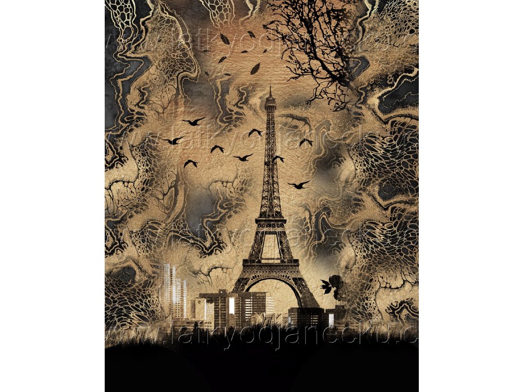 Teplákovina 240g - PANEL XL 100 cm - Paříž na zlaté