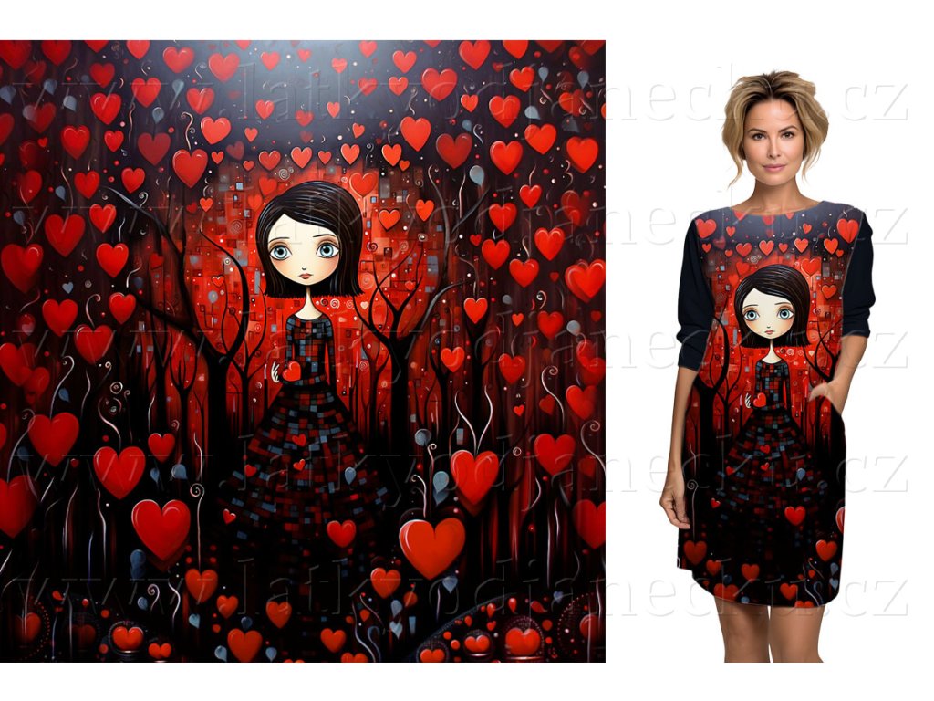 Teplákovina 240g * PANEL XL 90 cm * Dívka a srdíčka