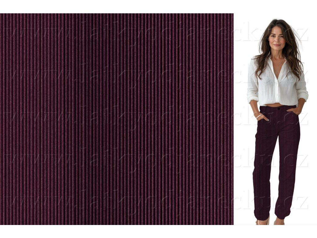 Teplákovina nejen na kalhoty 280 g - Imitace vínovofuchsiový manšestr