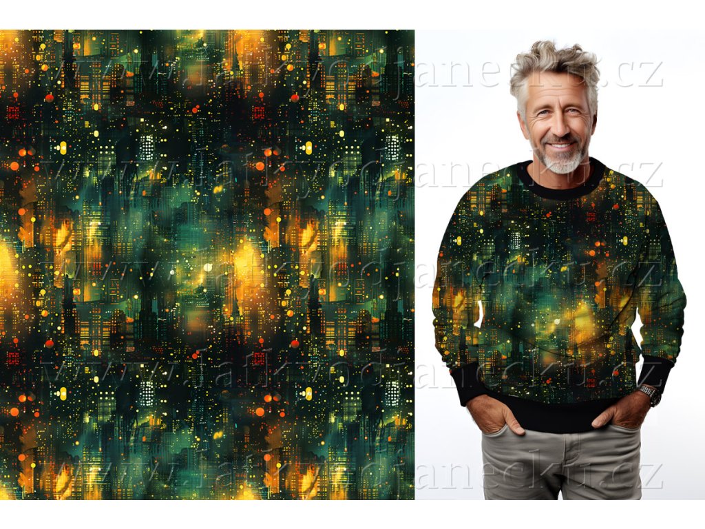 Teplákovina TUR 240g - Zelené noční město - KUS 0,7m