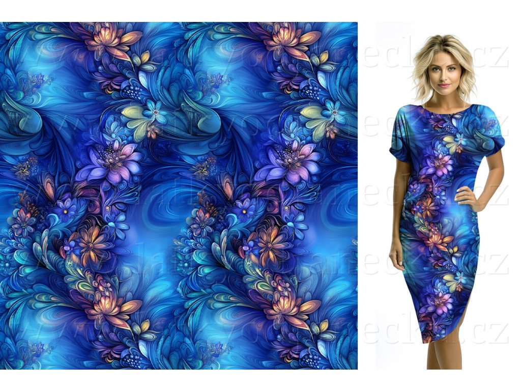 "Květinové vlny" je viskozový úplet, který v sobě snoubí hluboké tóny modré s bohatstvím fantazijních květů. Abstraktní vlnění a pestré detaily evokují snovou atmosféru a jedinečný styl. Tento materiál je ideální pro ty, kteří hledají originální a elegantní design s nádechem mystiky.