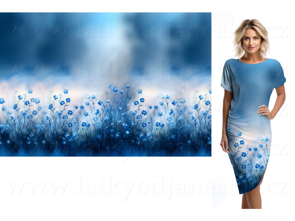 Viskozový úplet TOP 230g * Panel 120 cm * Modré kvítí